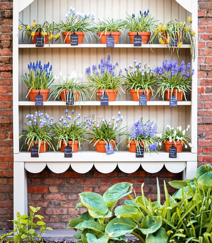 A typical potting bench with multiple levels may seem like a useful piece of furniture, but it also functions as great storage for any outdoor space. Use it to water plants one day and serve cool drinks the next.